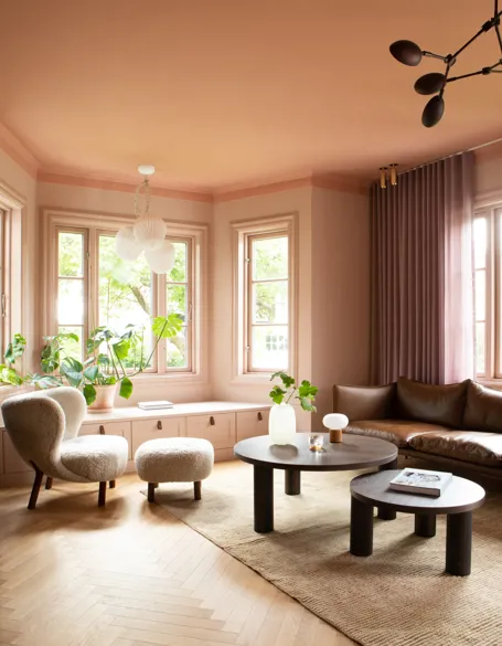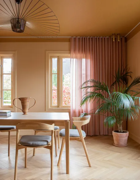 Med farger som India Yellow i spisestuen, Floating Fog i kjøkkenet og rosa i entreen, har hun latt hver farge fortelle sin egen historie. Med et ønske om å kombinere lekenhet og personlig uttrykk, tok de kontakt med KvintBlendex for å finne løsninger som kunne støtte deres kreative visjon.