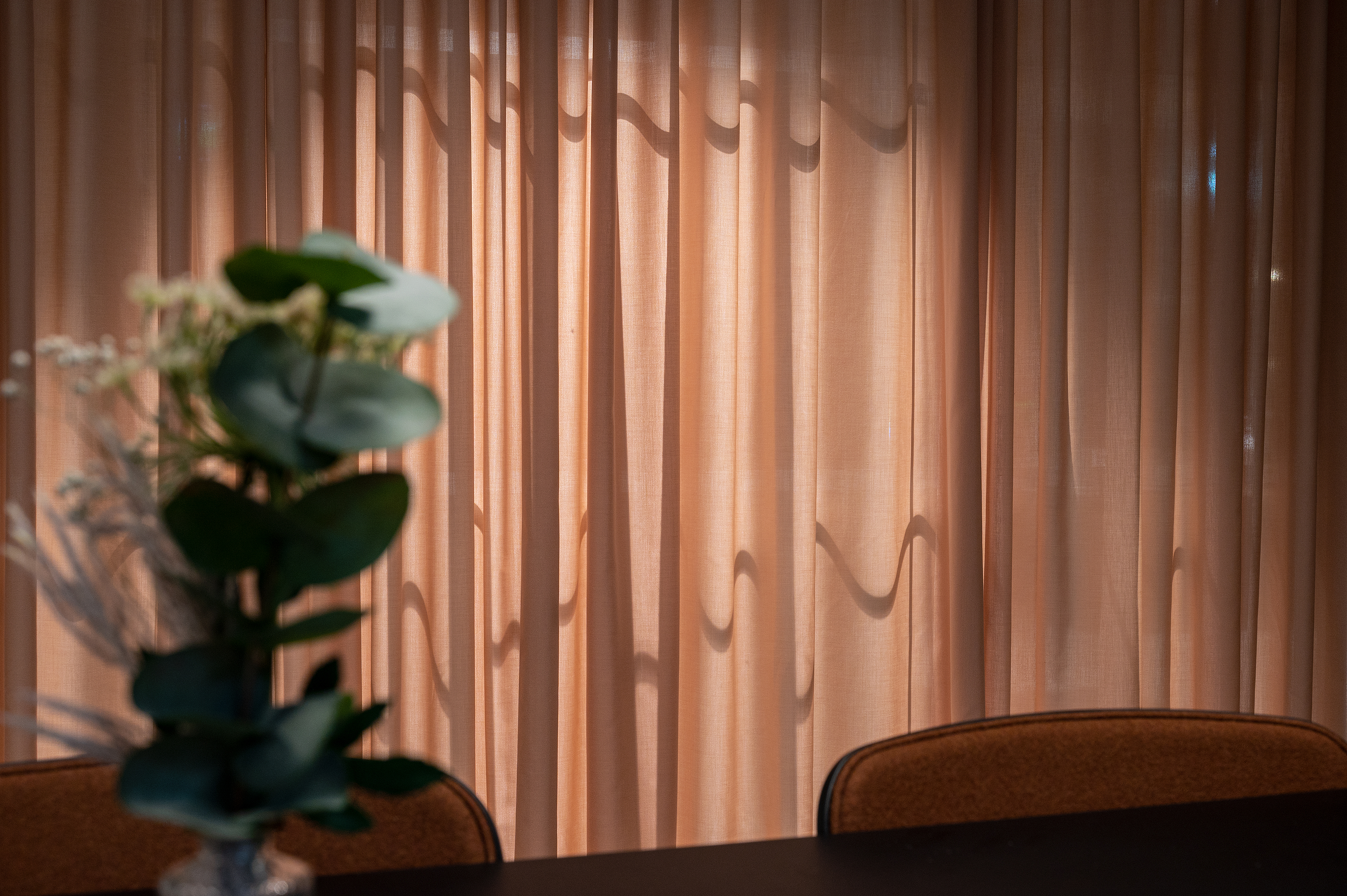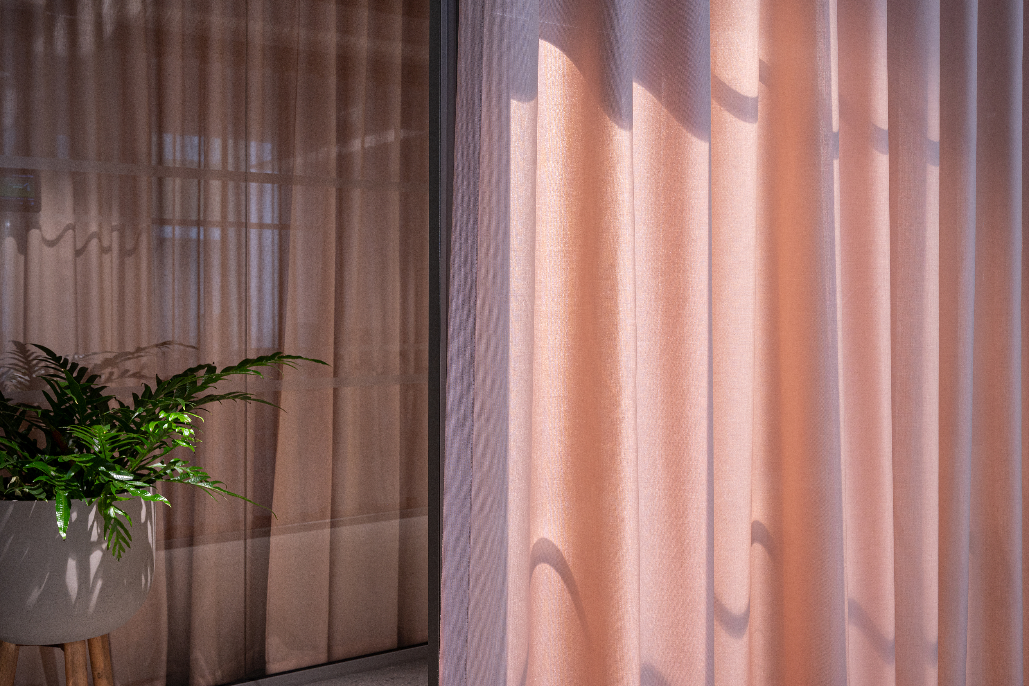 Rosa gardiner. Ca. 360 meter af tekstilet Karat fra Svensson