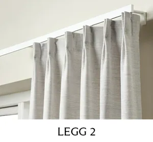 Vi behersker all slags søm, men generelt produserer vi gardiner med rynkebånd eller med faste legg, sidesøm og bunnfald med tråd som alltid er tilpasset fargen på gardinen. Ta gjerne en tur innom vårt showroom i Oslo, hvor vi kan vise eksempler på forskjellige sømmer.